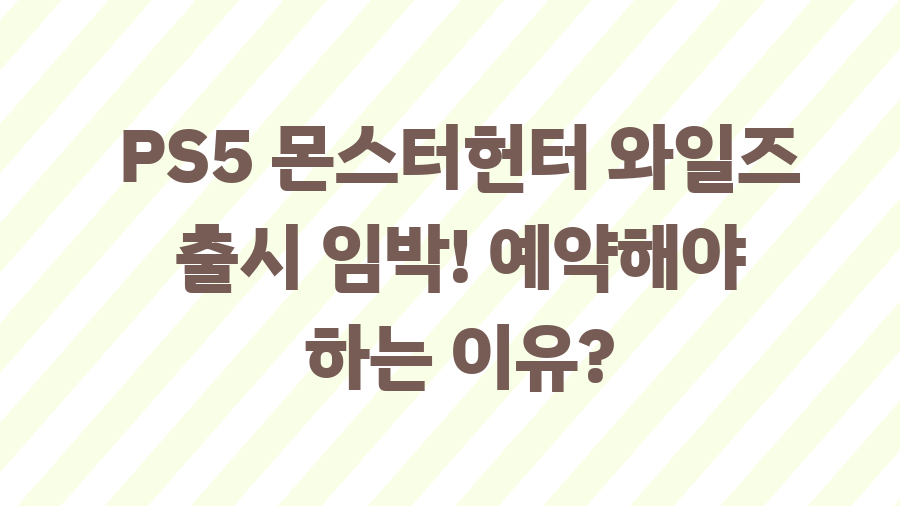 몬스터헌터 와일즈, PS5로 즐기는 궁극의 사냥 체험! 혹시 몬스터헌터 시리즈 좋아하시나요? 거대한 몬스터를 사냥하는 짜릿함, 친구들과 함께 즐기는 협동 플레이는 정말 최고죠! 이번에는 PS5로 출시될 몬스터헌터 와일즈 소식을 들고 왔습니다. 2025년 2월 27일, 여러분의 사냥 본능을 깨울 새로운 오픈 월드 액션 게임이 찾아옵니다. 지금부터 자세한 내용을 알아볼까요? 2025년 2월, 사냥 시작! 몬스터헌터 와일즈 출시 정보몬스터헌터 와일즈는 CAPCOM에서 개발하고 게임피아에서 퍼블리싱하는 액션 어드벤처 게임입니다. PS5 플랫폼으로 출시되며, 2025년 2월 27일에 만날 수 있습니다. 혼자서도, 친구들과 함께 4인 온라인 멀티플레이도 즐길 수 있다니 벌써부터 기대되지 않나요? 음성은 영어, 자막..